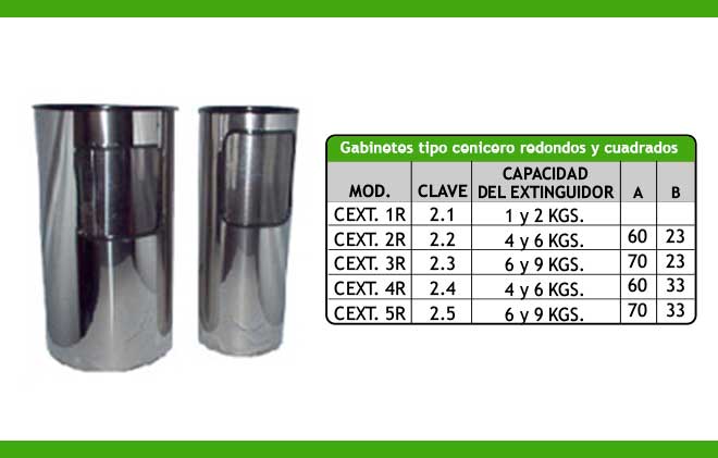 Gabinetes tipo cenicero redondos y cuadrado, para PQS Y CO2